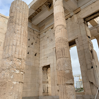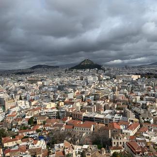 Anyways…I got into the Acropolis and forgot all about *those darn kids* because, well, it’s the Acropolis! I had downloaded the “Walking the Acropolis” episode from Rick Steve’s podcast to use an audio guide - 10/10 recommend. Full of factual information presented in an entertaining way, you can walk & listen at your own pace, and it’s free :) Rick used that soothing voice to take me up the Propylaea and into the presence of the Parthenon. It might have been windy and overcast, but that only meant the creamy stone shone brighter. I did the full 360 of the columns, stopping every now and then to just marvel at the miracle of it all. Looking over the stone wall, you could see Athens for miles, just never-ending buildings with the occasional site of ruins in the midst, like a small green oasis. And this has been standing for more centuries than I’ve been alive. (25 vs 21, but who’s counting?)