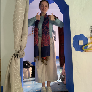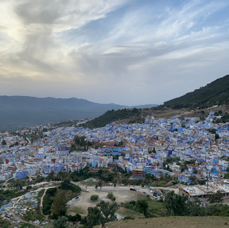 The Blue City! Have you ever seen those influencer-esque pictures of someone in front of an entire cerulean city? If they’re not in Santorini, chances are, they’re in Chefchaouen, Morocco. Also known as the Blue Pearl, Chefchaouen is this small touristy town nestled in the Rif Mountains, known for being an entirely white/blue city. It's also spelled about 100 different ways, so keep that in mind when Googling, or you know, trying to get there in person...It was about a six hour drive from Casablanca, so myself, Annakate, Lauren, Laney & Taylor hired a driver/guide to take us there for a one night stay.